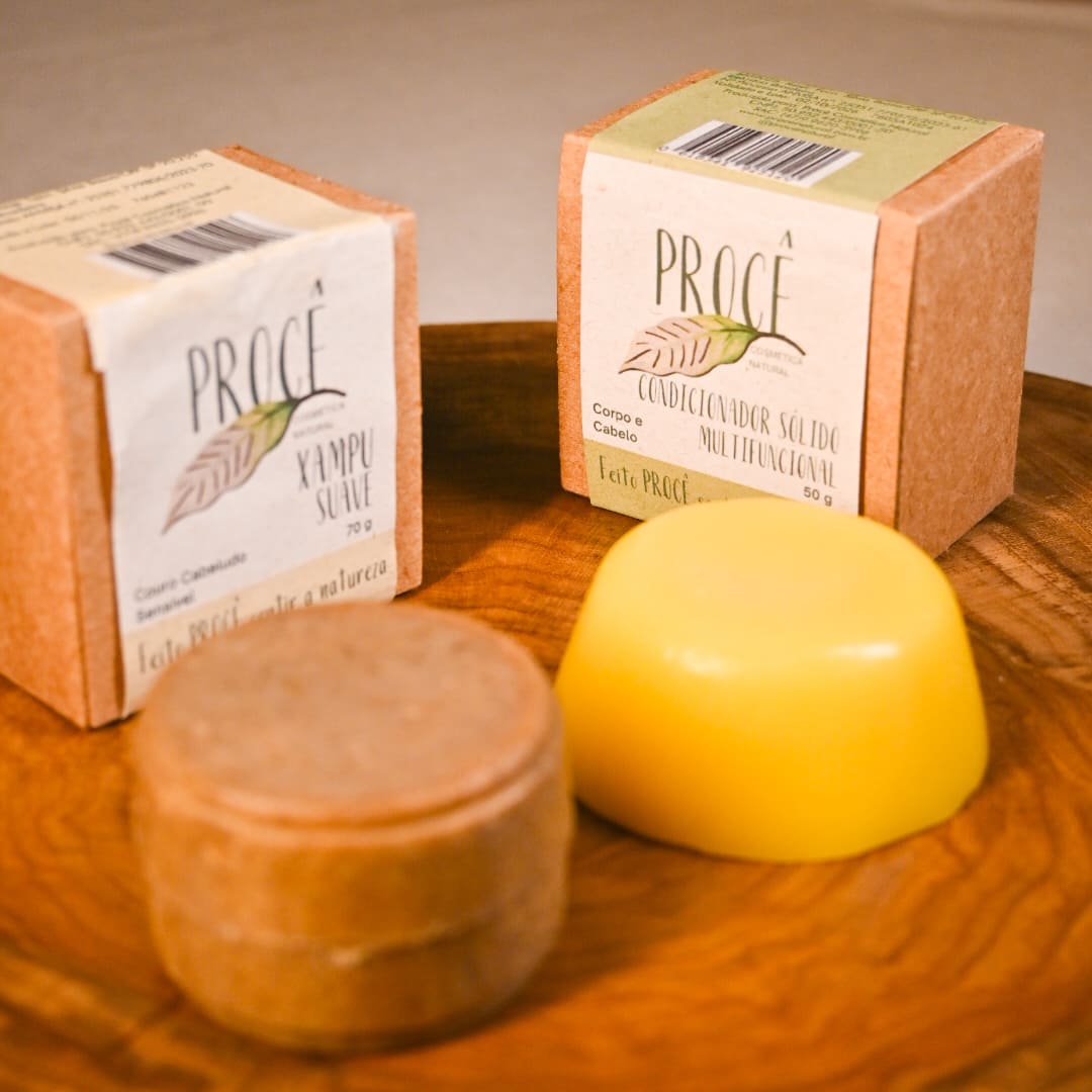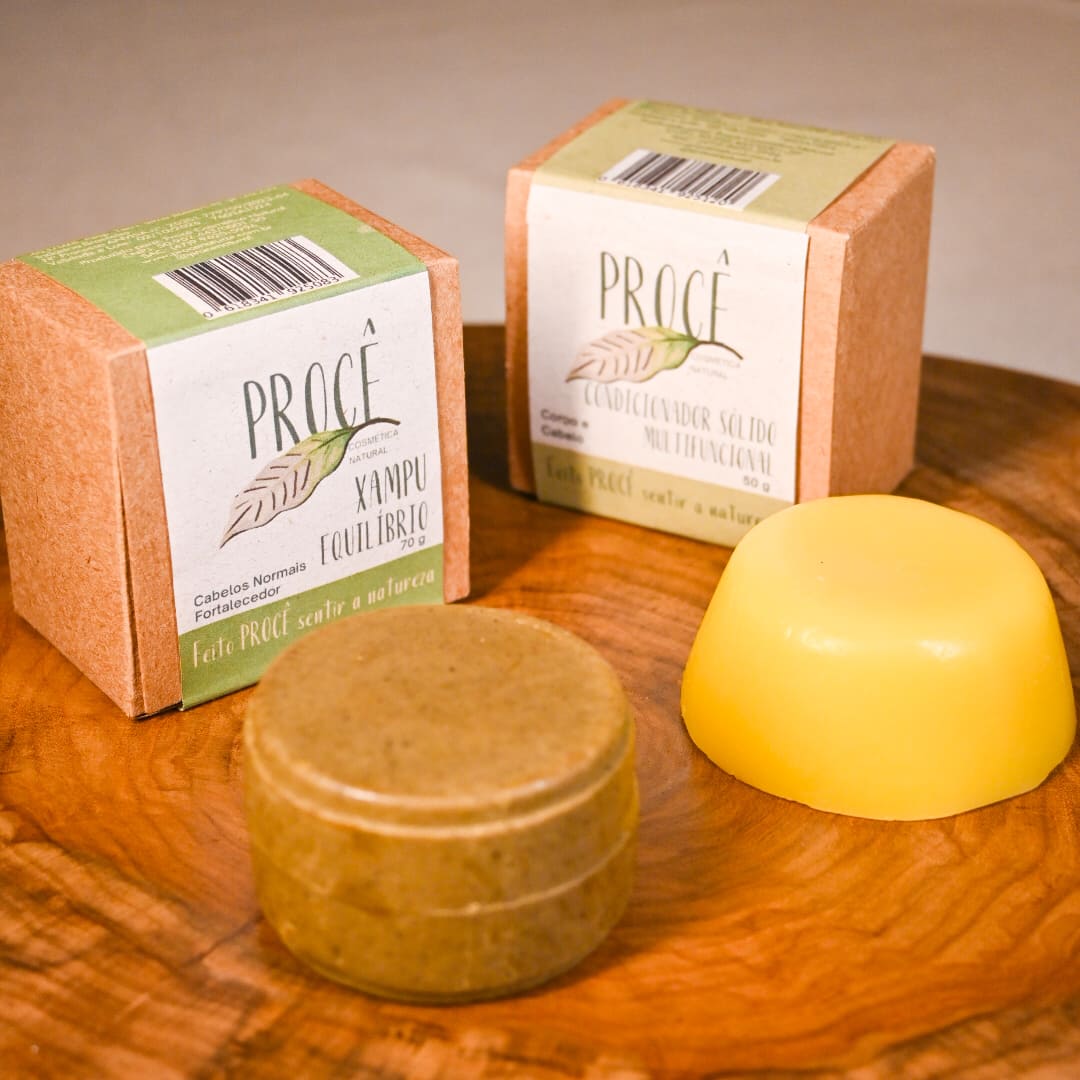 Molhe sua barra de xampu e espalhe por todo o couro cabeludo formando uma espuma, esfregue e massageie por todo o cabelo até as pontas, enxague bem. Utilize o condicionador em barra Procê, friccione levemente por toda extensão dos fios, até soltar seu creme, massageie com movimentos delicados por toda extensão do cabelo, deixe agir por alguns minutos e enxague. Essa barra multifuncional pode ser utilizada também como hidratante corporal com enxague. Mantenha sua barra apoiada em uma saboneteira drenada que não acumule água ou sobre uma bucha vegetal.